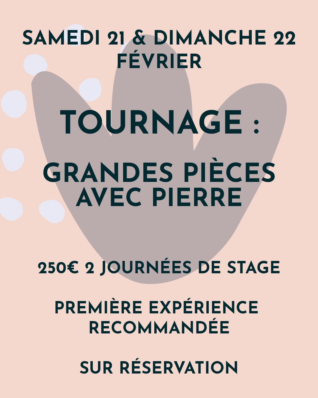 On vous propose des stages de tournage et ou de modelage, pour débutants ou initiés avec des intervenants exterieurs !
